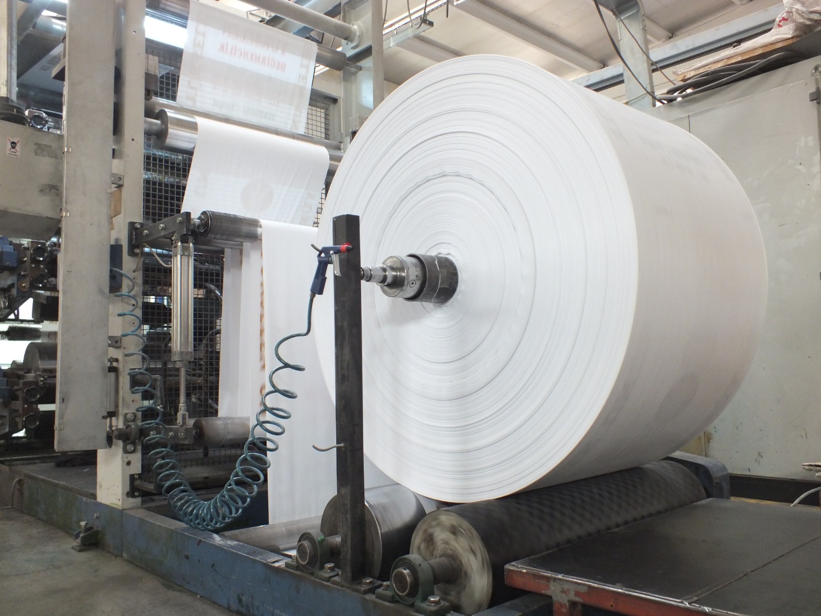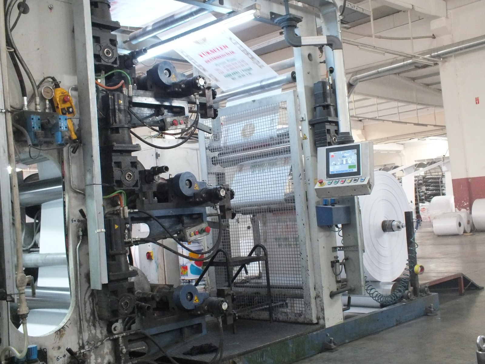 Müşteriye ait tasarımlar, PP rulo halindeki kumaşlara 30 cm - 80 cm arası 6 farklı renkte, 80 cm - 140 cm arası 4 farklı renkte olmak üzere iki farklı yüzeye flexo baskı teknolojisi ile uygulanmaktadır.